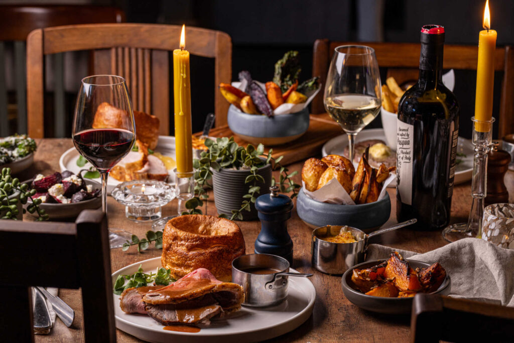 All served with roast potatoes, spring cabbage, green beans, roasted carrots, parsnips, creamed leeks, Yorkshire pudding, beef dripping gravy