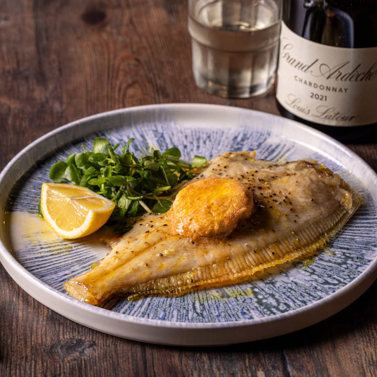Grilled Cornish sole, Devon crab butter, crushed new potatoes | 23.5 585 kcals